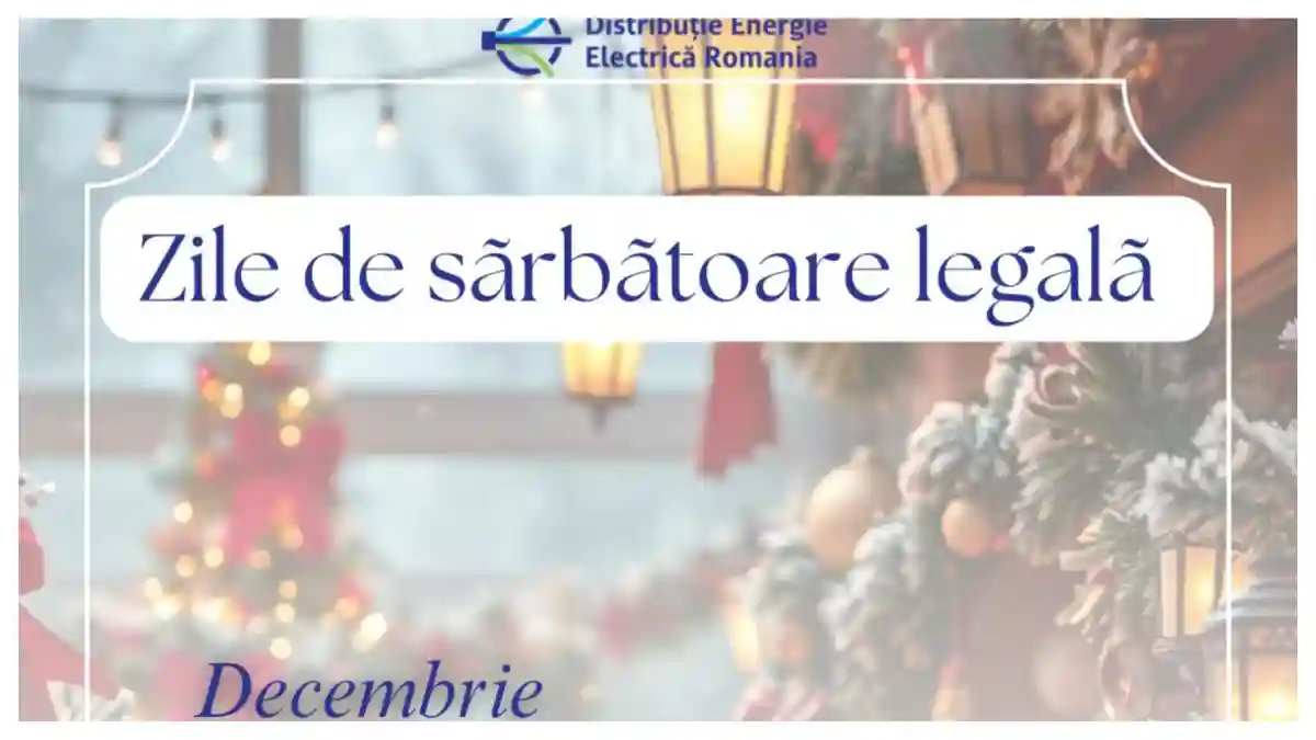 Cu prilejul zilelor de 25 și 26 Decembrie, sărbătoarea Crăciunului – Nașterea Domnului și cea de-a doua zi de Crăciun, angajații din cadrul Centrelor de Relații cu Utilizatorii vor beneficia de zile libere legale, în timp ce echipele operative DEER rămân în permanență disponibile, pregătite să intervină prompt în cazul apariției unor eventuale disfuncționalități în alimentarea cu energie electrică.