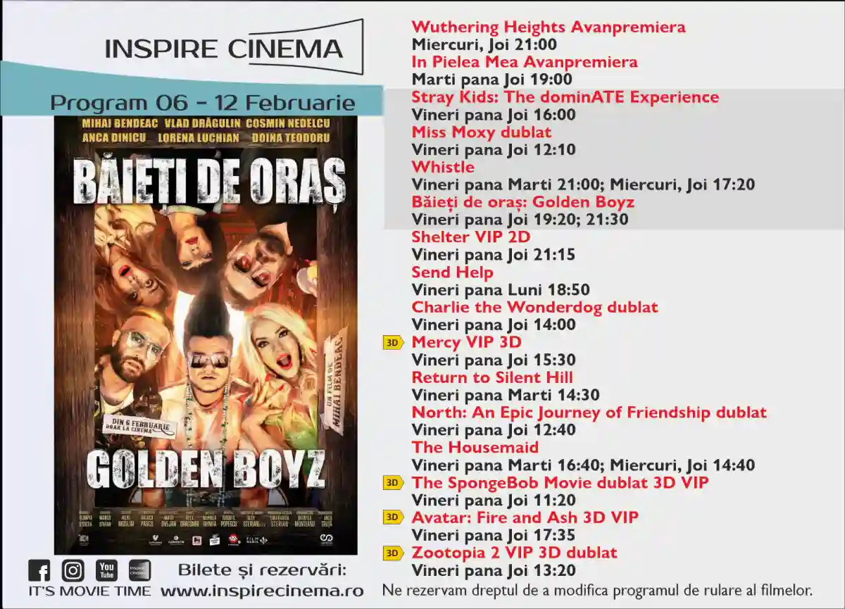 Ne rezervam dreptul de a modifica programul de rulare al filmelor. Rezervari si bilete: www.inspirecinema.ro.