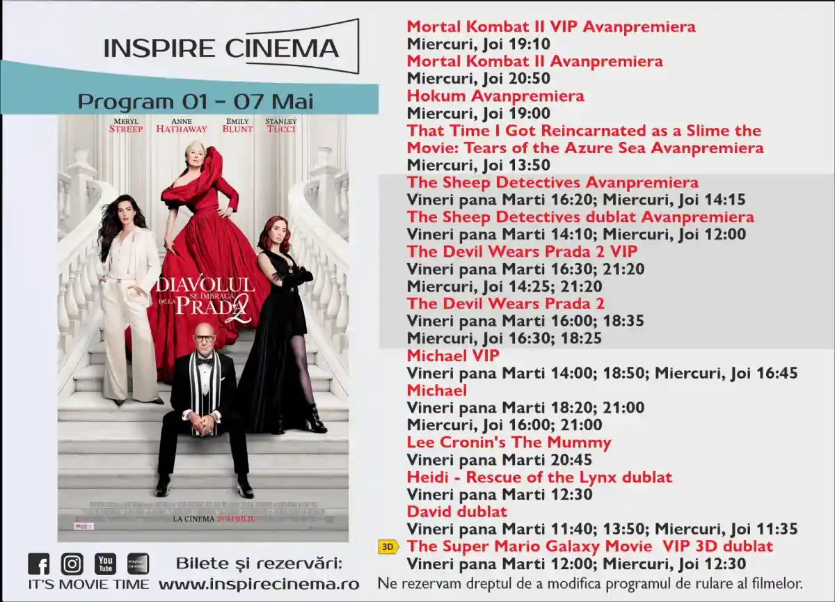 Rezervari si bilete: www.inspirecinema.ro.