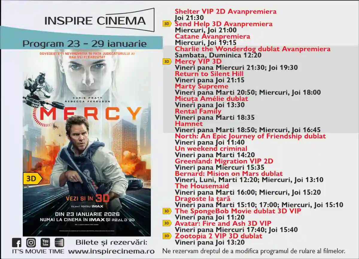Ne rezervam dreptul de a modifica programul de rulare al filmelor.