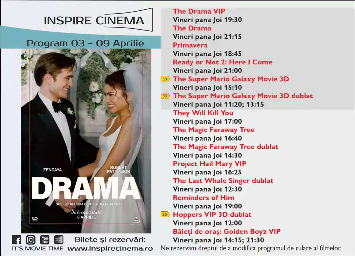 Rezervari si bilete: www.inspirecinema.ro.