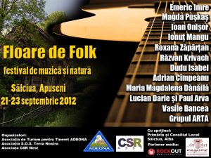 În perioada 21-23 septembrie 2012, la Sălciua, se va desfăşura cea de-a III-a ediţie a Festivalului „Floare de Folk”. Evenimentul are ca obiective punerea în valoare a muzicii româneşti de calitate, cântată live, precum şi expunerea cântăreţilor de muzică acustică şi folk; promovarea obiectivelor naturale ale Masivului Bedeleu, a patrimoniului istorico-cultural al zonei Sălciua dar şi stimularea turismului local şi regional. Vor cânta pentru dumneavoastră: Emeric Imre, Magda Puskas, Ioan Onişor, Ionuţ Mangu, Roxana Zapartan, Razvan Krivach, Dudu Isabel, Maria Magdalena Dănăilă, Adrian Cîmpeanu, Paul Arva, Lucian Darie, Vasile Bancea ş ai Grupul Arta.