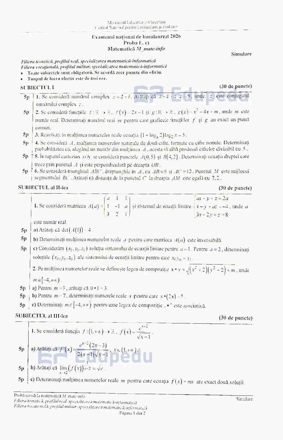 Marți, 24 martie 2026, s-a desfășurat proba obligatorie a profilului (Matematică sau Istorie) din cadrul simulării examenului național de Bacalaureat 2026.