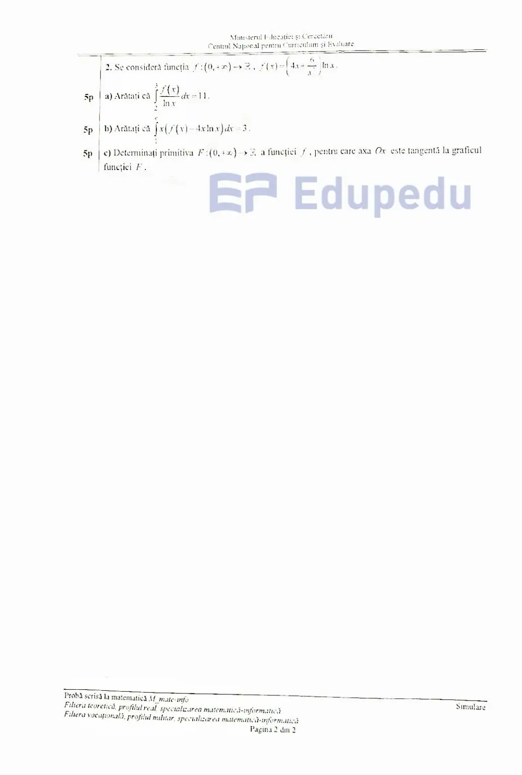 *25 martie 2026 – Proba E.d: proba la alegere a profilului și specializării