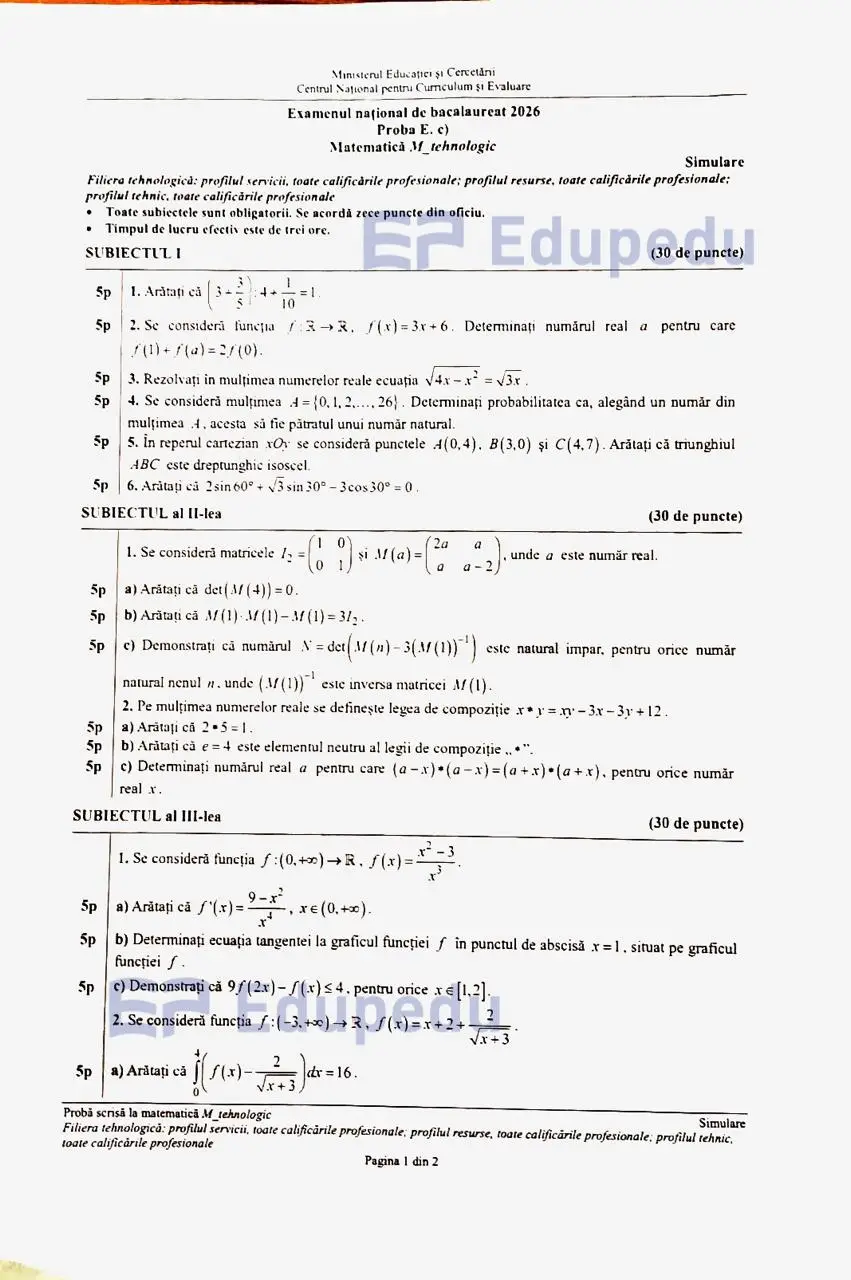 *24 martie 2026 – Proba E.c: proba obligatorie a profilului
