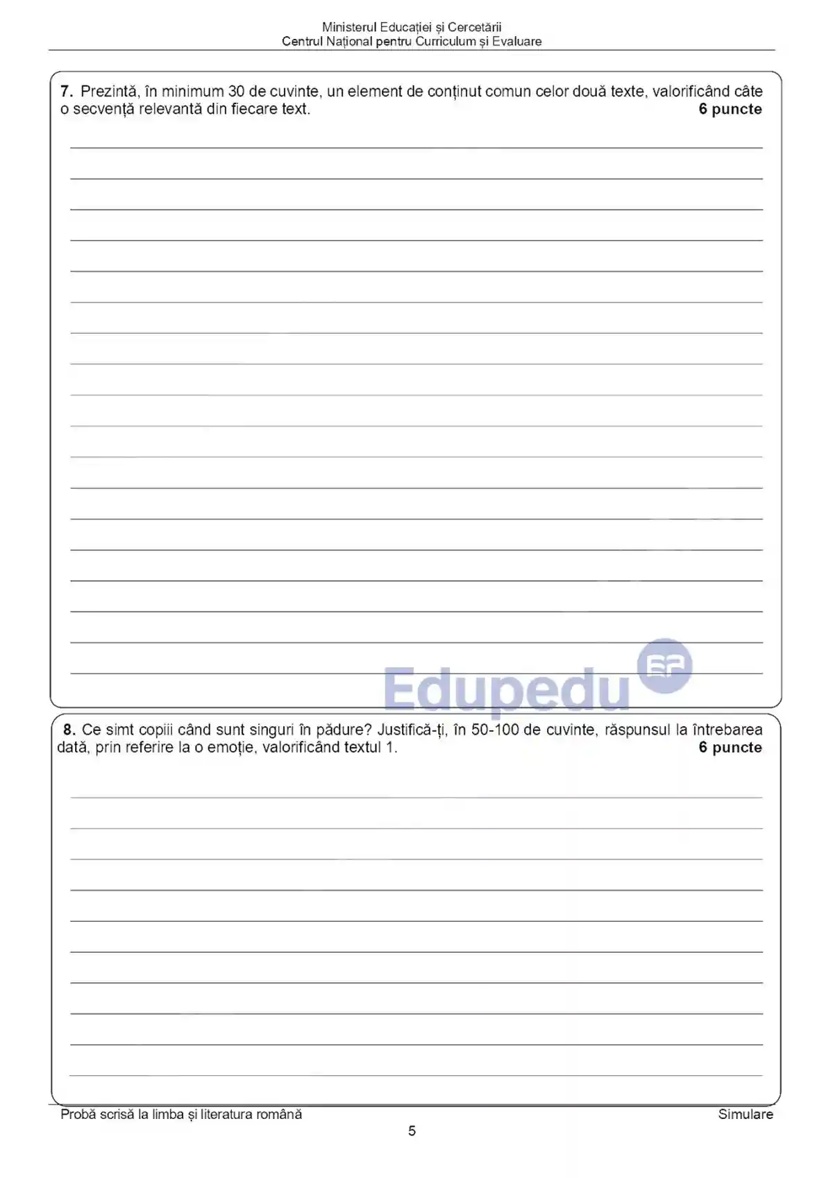 SUBIECTE SIMULARE Evaluarea Națională 2026: Ce au avut de rezolvat elevii de clasa a VIII-a la limba și literatura română