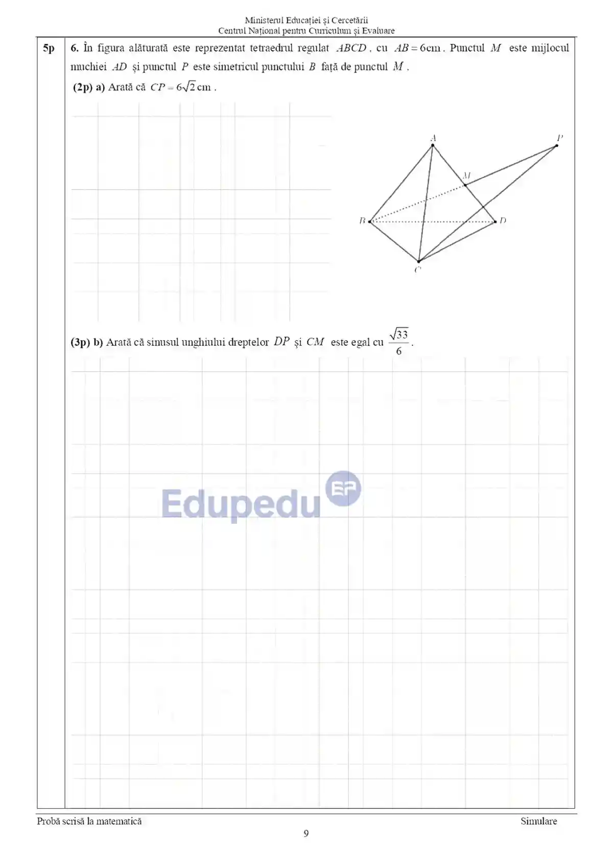 Subiectul al II-lea a fost integral grilă și majoritatea problemelor au fost de geometrie. Iar la subiectul al III-lea itemii au solicitat scrierea pe foaia de examen a rezolvărilor complete. La problema de geometrie în spațiu, ultimul item, elevii au avut un tetraedru regulat.