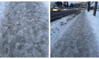 FOTO ȘTIREA TA | ,,Nu intervine nimeni”. Ghețuș pe pista de biciclete și trotuar pe o stradă din Alba Iulia