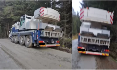 FOTO ȘTIREA TA | Drumul dintre Oașa și Luncile Prigoanei s-a rupt sub greutatea unei macarale O porțiune din drumul forestier care leagă Barajul de la...