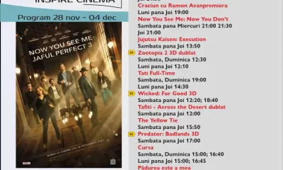 Programul Inspire Cinema Alba Iulia, pentru perioada 28 noiembrie – 4 decembrie 2025. Ce filme vor rula la cinematograful din centrul comercial Alba Mall Citește și:...