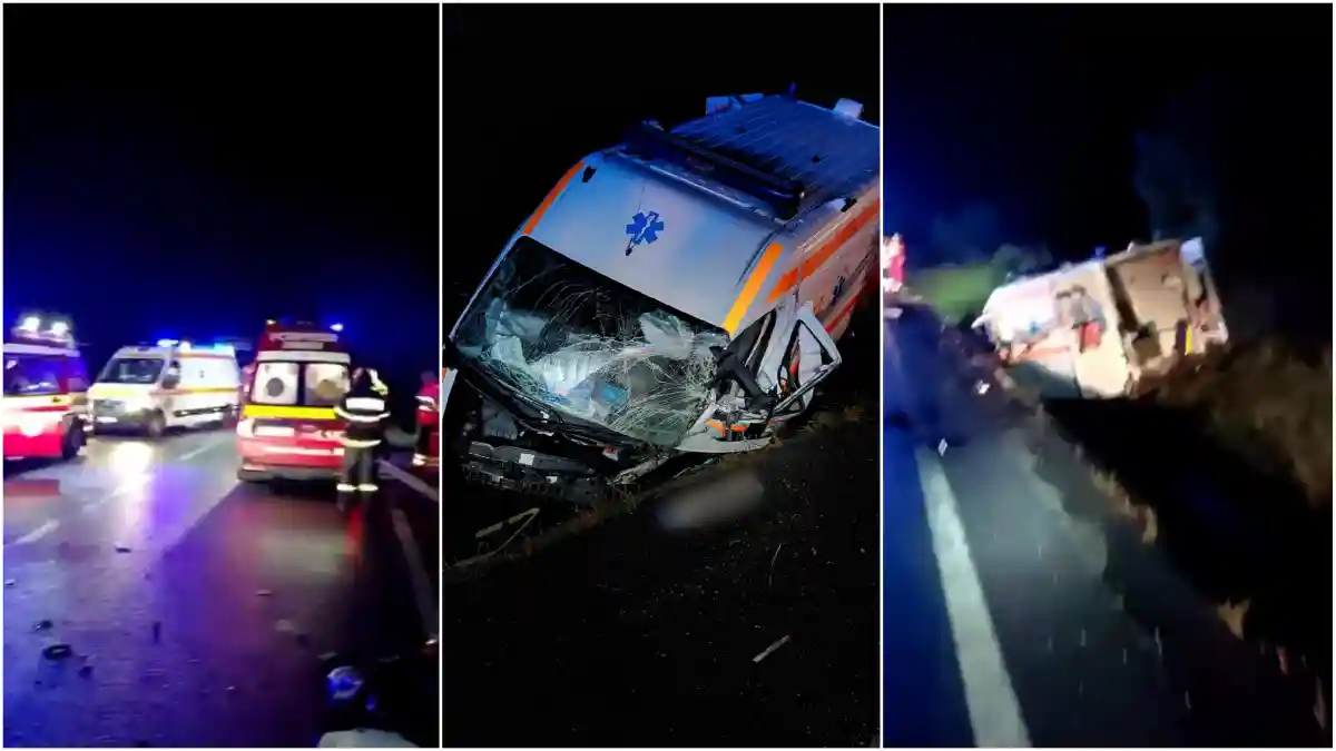 În ambulanță se aflau doi membri ai echipajului și un pacient.