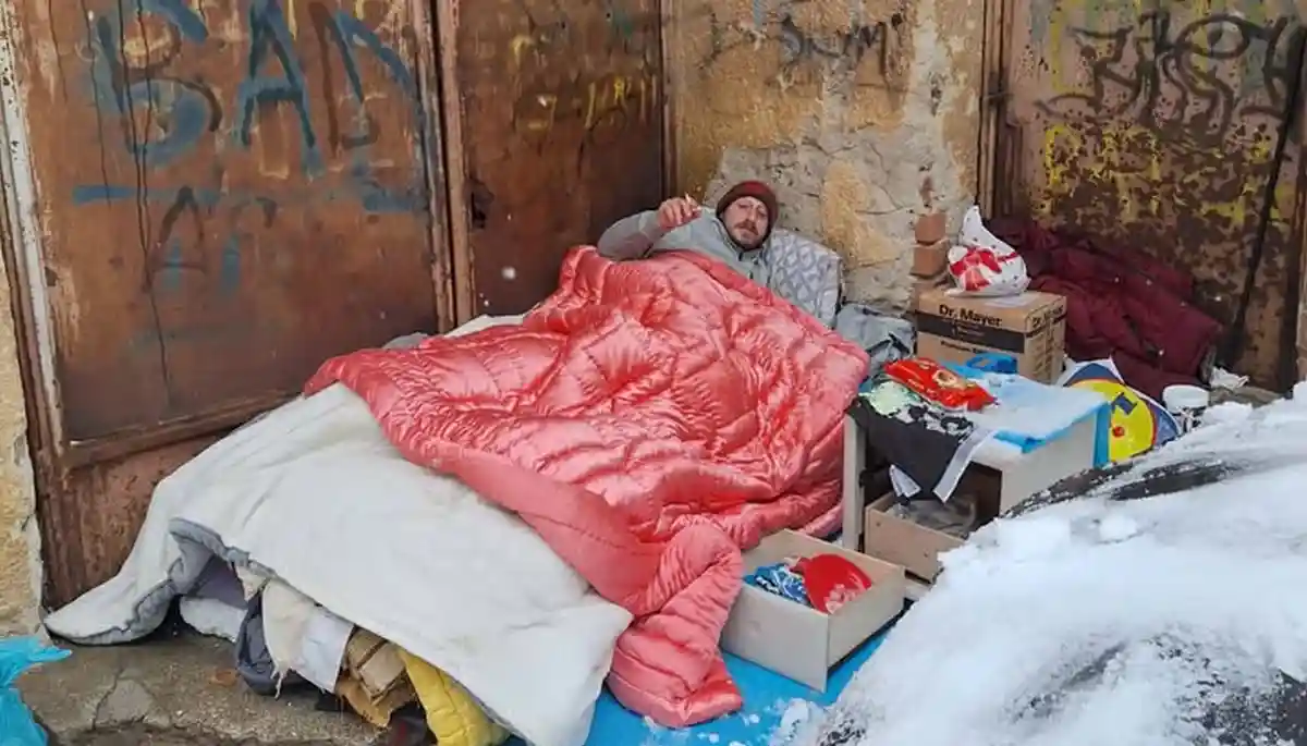 VIDEO | APEL UMANITAR pentru Andrei, un tânăr fără adăpost din Alba, care doarme în plină iarnă, pe străzi: ,,Și-a improvizat un dormitor lângă niște containere de gunoi”