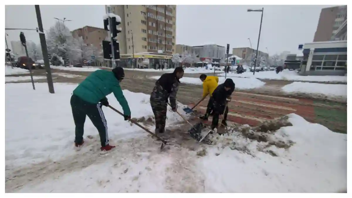 Mai multe persoane au fost mobilizate pentru a curăța zăpada de pe mai multe porțiuni din zonă, în condițiile în care ninsorile din ultimele zeci de ore au continuat să afecteze municipiul.