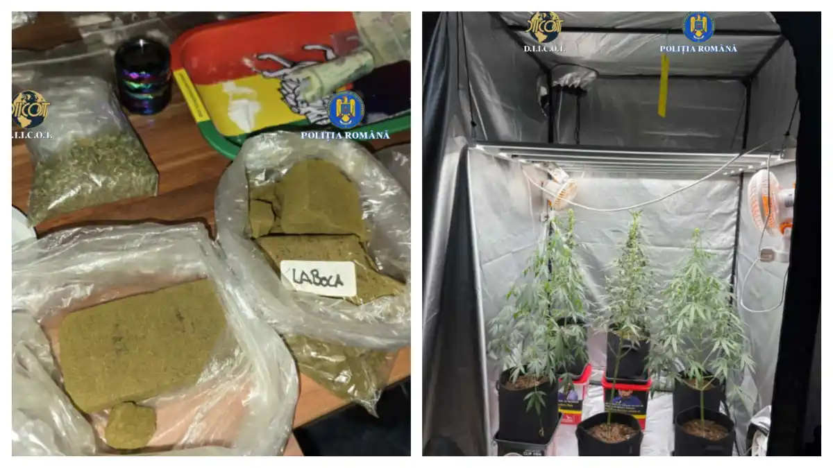 În urma perchezițiilor, oamenii legii au descoperit 400 de grame de rezină de canabis (drog de risc), 100 de grame de canabis (drog de risc), 80 de grame de substanță cristalină 4 CMC (drog de mare risc), 40 de grame de ciuperci care conțin psilocine (drog de mare risc), comprimate ecstasy (drog de mare risc), 6 plante de canabis aflate în stadiu avansat de creștere și 12 plante de canabis aflate în stadiu incipient de dezvoltare, două corturi destinate creșterii indoor a plantelor de canabis, recipiente cu fertilizant și soluții nutritive pentru plante, aparat electric pentru deshidratarea plantelor, cântare, grindere, obiecte purtând urme de substanță, sume de bani în lei, euro, dolari și lire sterline, precum și alte mijloace de probă.