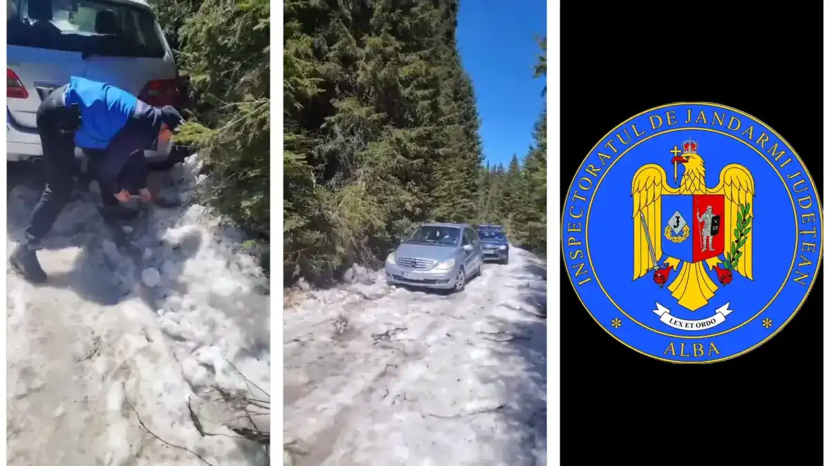 Duminică, 26 aprilie 2026, în jurul orei 14:00, printr-un apel la SNUAU 112, jandarmii montani din cadrul Postului de Jandarmi Montan Șugag au fost solicitați să intervină în sprijinul a trei persoane de sex feminin, din municipiul Deva (mamă, fiică și mătușă), care au rămas împotmolite cu autoturismul în zăpadă, pe un drum forestier din zona Poiana Muierii.