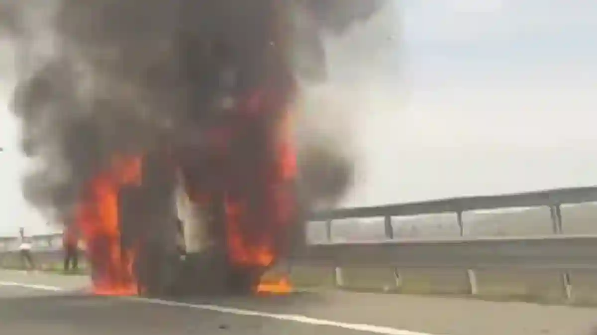 Incendiu pe autostrada A10, Teiuș – Aiud: O autoutilitară de transport marfă arde ca o torță