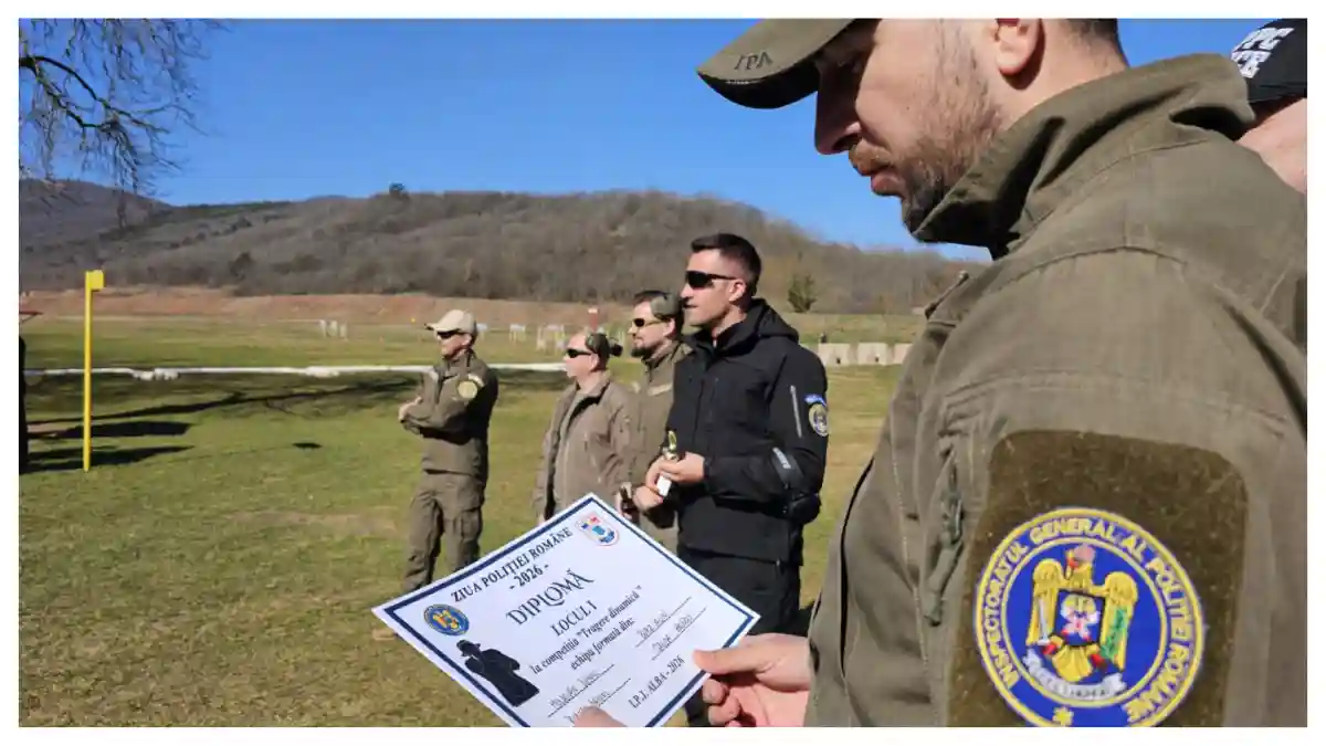 Ieri, 9 martie 2026, în cadrul activităților sportive dedicate Zilei Poliției Române, polițiștii Biroului Pregătire Profesională au organizat o competiție de tir dinamic, pe un poligon de tragere, aflat în municipiul Alba Iulia.