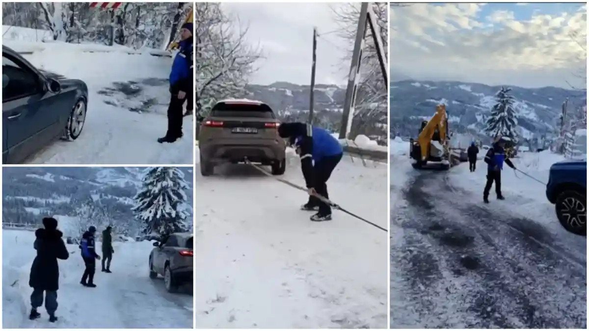Pentru gestionarea situației, jandarmii au solicitat sprijinul Primăriei Gârda de Sus, care a intervenit cu un autovehicul dotat corespunzător, reușind să tracteze cele două autoturisme și să asigure coborârea acestora în siguranță.