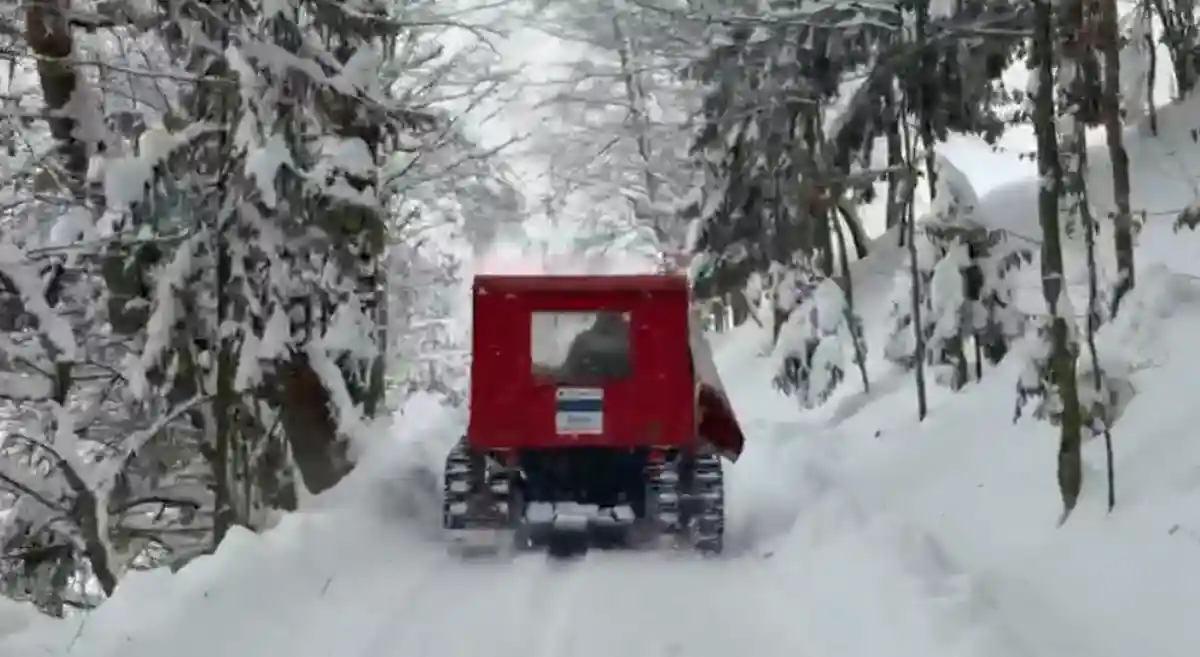 O misiune dificilă de salvare este în curs într-un cătun izolat din Apuseni. Pompierii din Câmpeni intervin cu o autoșenilată și o mașină de teren pentru extragerea unei persoane în vârstă, cu probleme medicale.