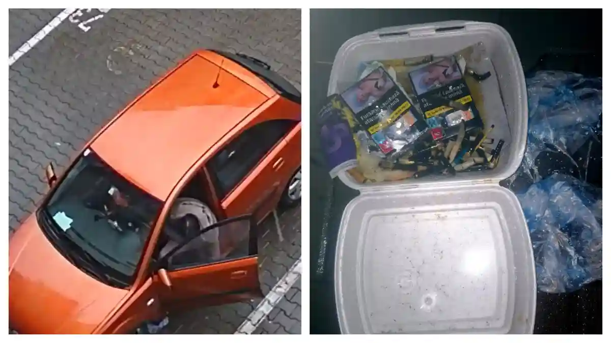 Un trecător a fotografiat resturile lăsate în urmă: pachete și mucuri de țigări, resturi de mâncare și o caserolă plină de gunoaie sunt „cadoul” lăsat de femeie în parcare.