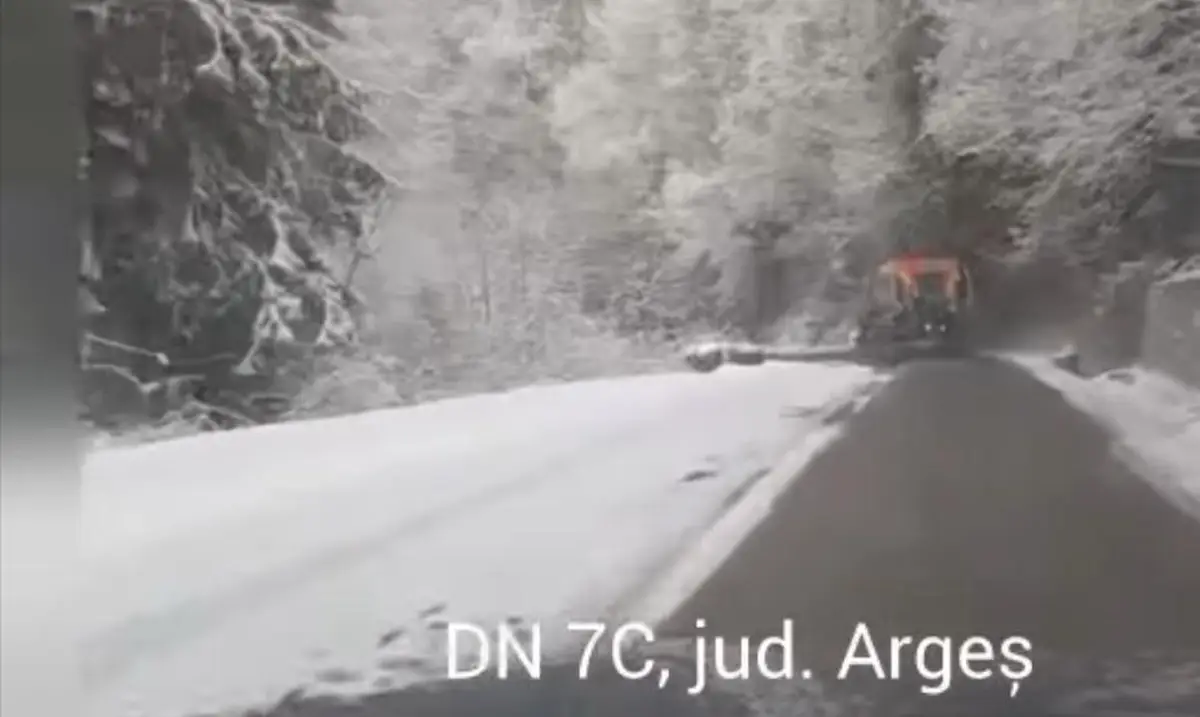 Se acționează cu autoutilaje cu lamă și material antiderapant pe DN7C – Transfagarasan, jud. Argeș”, a transmis DRDP București marți, 17 februarie 2026, la ora 12.45.