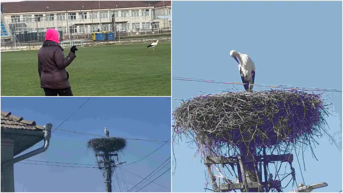 O barză, vestitorul primăverii, s-a întors la cuibul său Cugir. O localnică a botezat-o Evelin