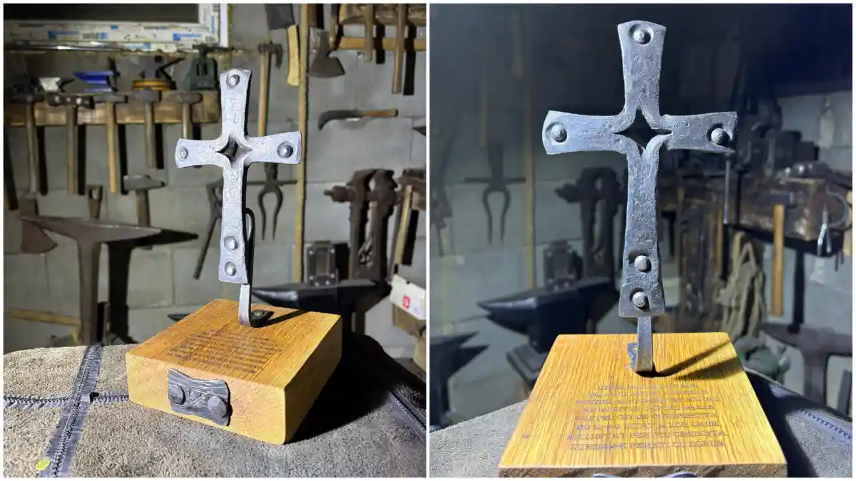 VIDEO | O cruce de fier, omagiu pentru cei care au chinuit în ”Zarca Aiudului”: Oțelul odinioară părtaș la suferință, purificat prin foc și prin cuvânt de un meșter fierar și o poetă