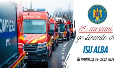 ISU Alba: 110 misiuni gestionate de pompieri în minivacanța de Crăciun. Cinci incendii și două accidente, printre intervenții ISU Alba a gestionat 110 misiuni gestionate de pompieri în minivacanța de Crăciun, printre ele fiind cinci incendii și două accidente la care au intervenit salvatorii. Pompierii din cadrul ISU Alba au gestionat în perioada 25 – […]