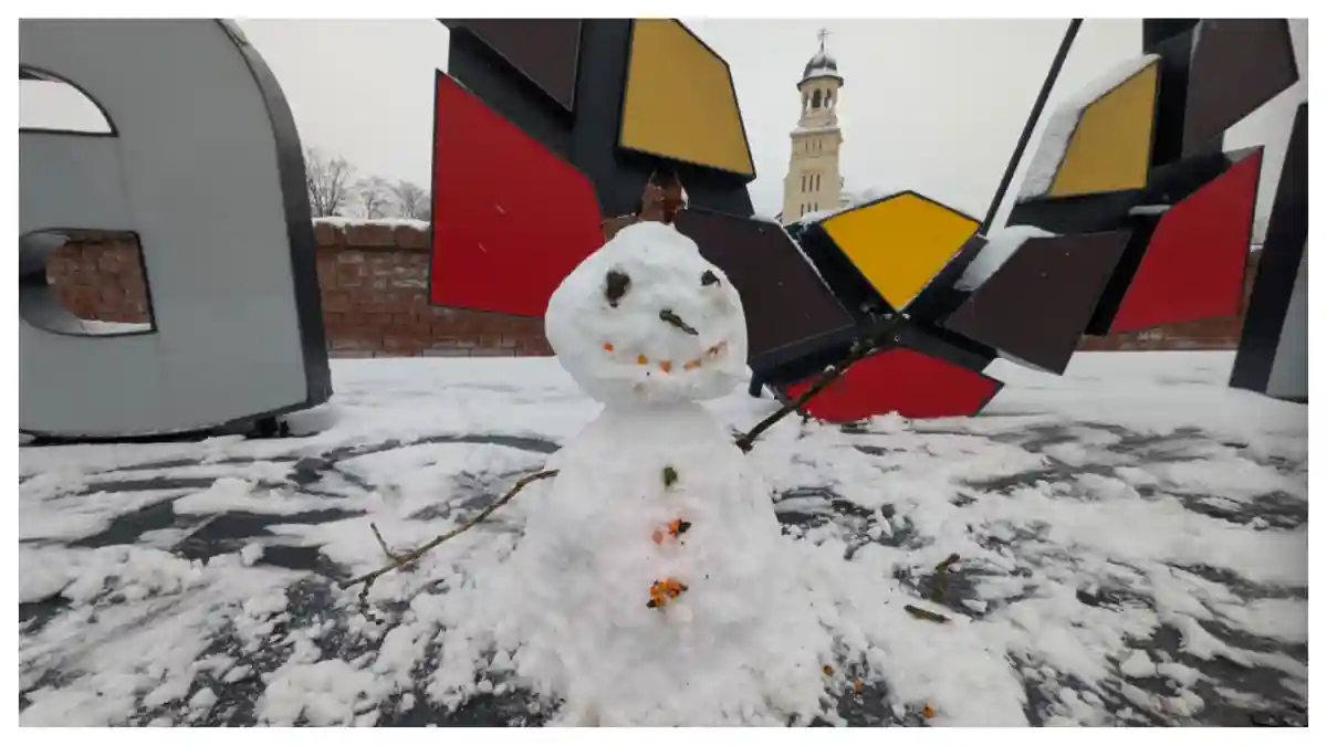 ,,Facem un om de zăpadă cu ocazia primei zăpezi din Alba Iulia. Toată familia participă. Mai avem de făcut zâmbetul, mai punem niște nasturi. Pentru fetiță, este primul care l-a făcut în viața ei. Am fost norocoși”, a explicat femeia.