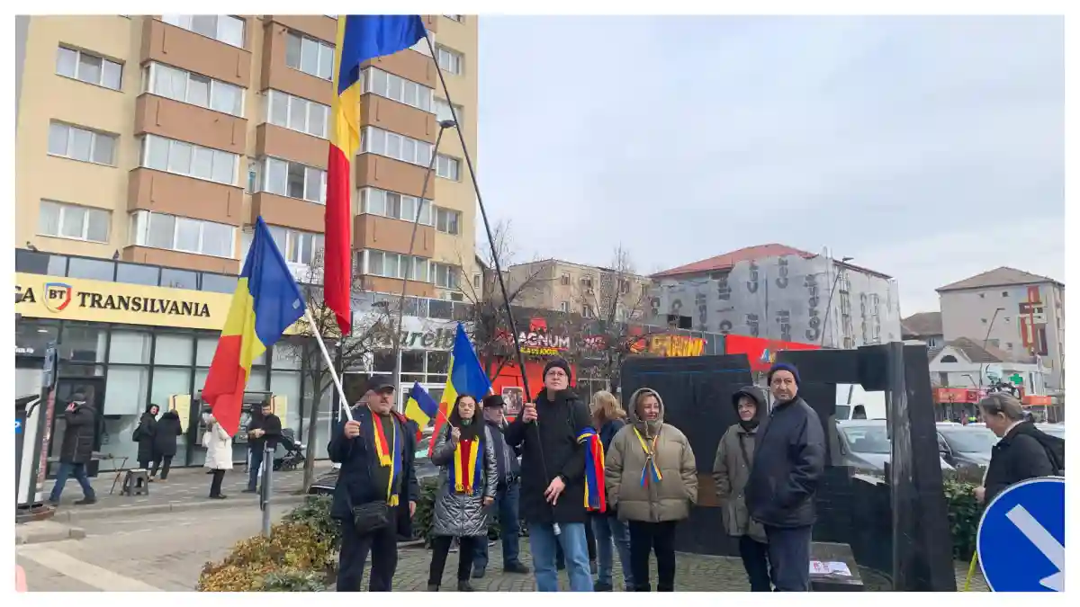 Câteva zeci de persoane s-au adunat astăzi, 12 februarie 2026, la Monumentul Eroilor Revoluției din Alba Iulia pentru a-și exprima nemulțumire cu privire la deciziile luate de Guvern.