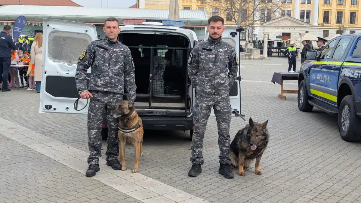 Sara și Tina, două cățelușe polițiste, vedete de Ziua Poliției 2026, la Alba Iulia. Patrupedele sunt specializate în patrulare și intervenție