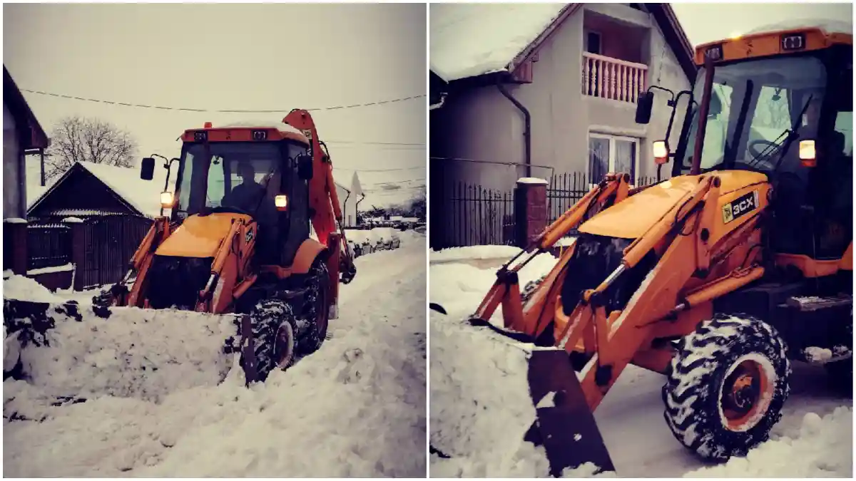 Omul s-a urcat la volanul utilajului său, un buldoexcavator, și s-a apucat să deszăpezească mai multe străzi din zona unde locuiește.