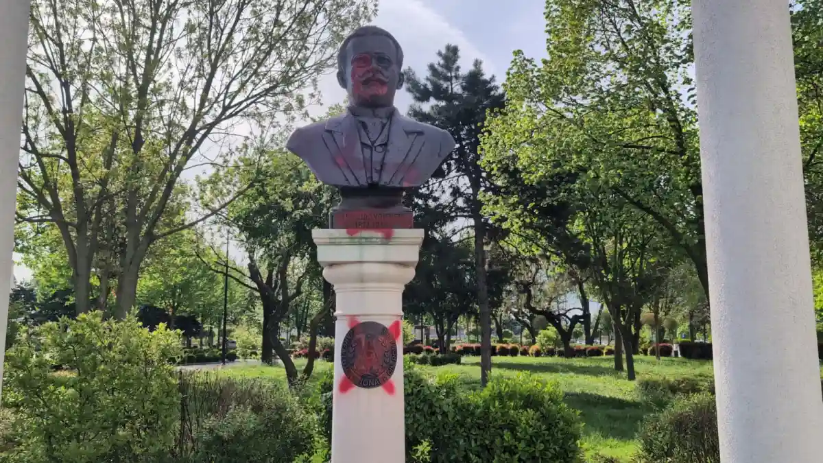 VIDEO ȘTIREA TA | Act de vandalism în Parcul Unirii din Alba Iulia: Statuia lui Alexandru Vaida-Voevod, însemnată cu spray roșu de tip graffiti