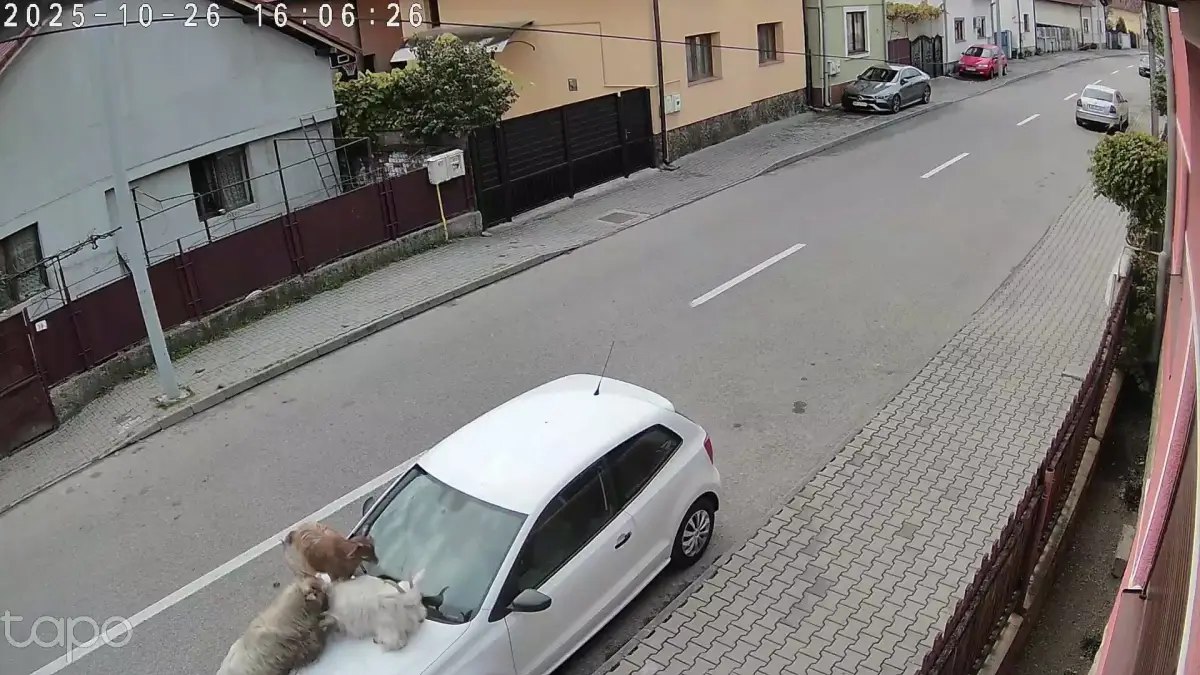Cornutele s-au urcat pe un Polo, au cercetat cu atenția zona, apoi, obosite, s-au odihnit pe capota autoturismului.