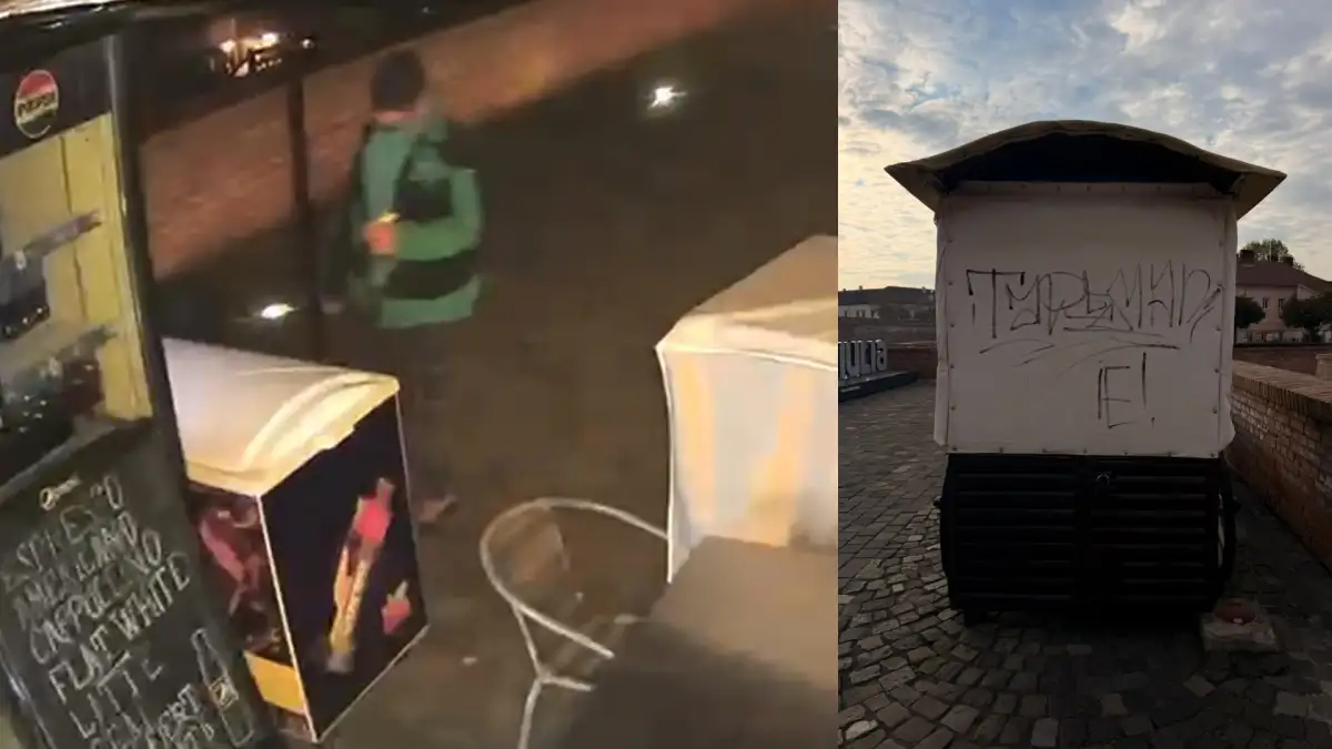 În această dimineață, în jurul orei 03:38, o căruță folosită ca spațiu pentru comercializare în Cetatea Alba Iulia a fost vandalizată, incidentul fiind surprins de camera de supraveghere instalată în zonă. Imaginile arată doi bărbați care păreau că se plimbă împreună prin cetate, iar unul dintre ei a scris cu un marker pe capacul frigiderului de depozitare al căruței.