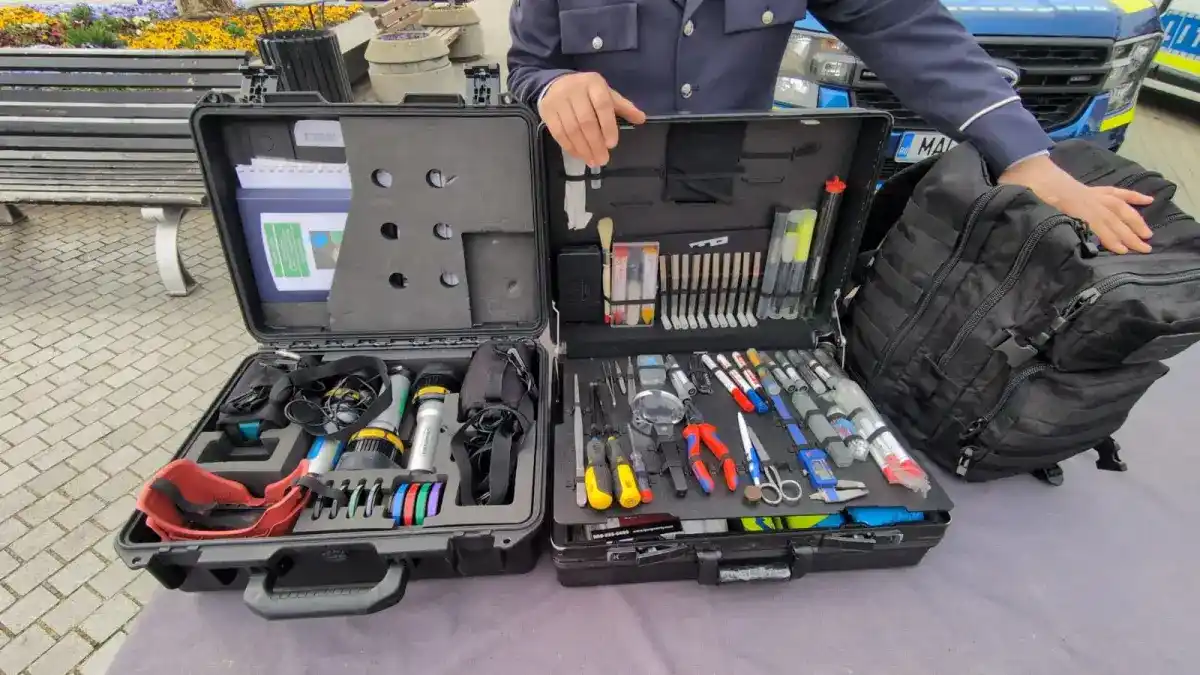 Este vorba de trusa universală pentru cercetarea la fața locului a diferitelor tipuri de infracțiuni, o trusă cu 3 lanterne cu diferite lungime de undă, diferite filtre și ochelari de protecție cu care sunt căutate anumite tipuri de urme, respectiv trusa universală tip rucsac cu care polițiștii fac deplasarea în zone greu accesibile, unde nu se poate ajunge cu autospecialele din dotare.
