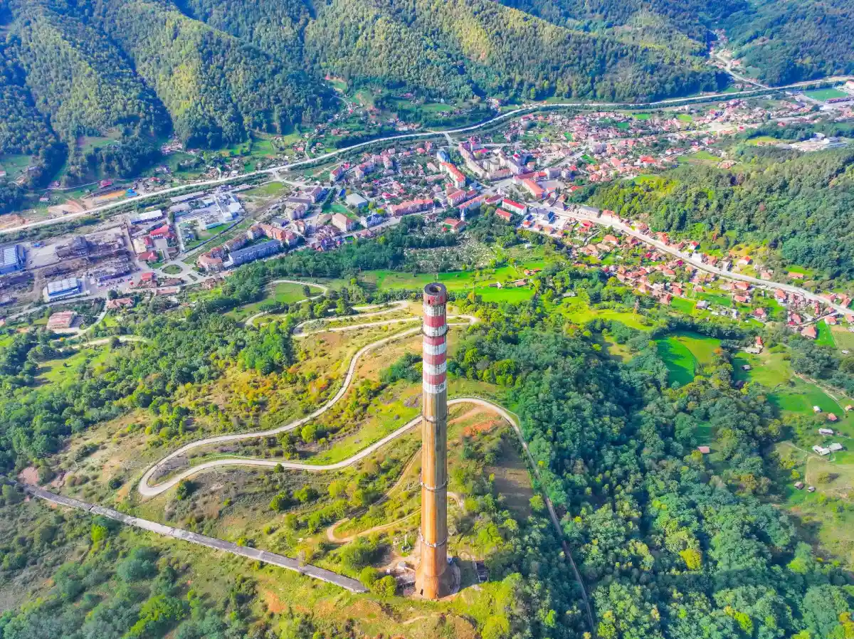 VIDEO | Turnul din Zlatna, clădire emblematică pentru perioada comunistă, încă veghează mica urbe din Apuseni. Coșul de dispersie de peste 200 de metri, între nostalgia locurilor de muncă dispărute și amintirea unei epoci a poluării
