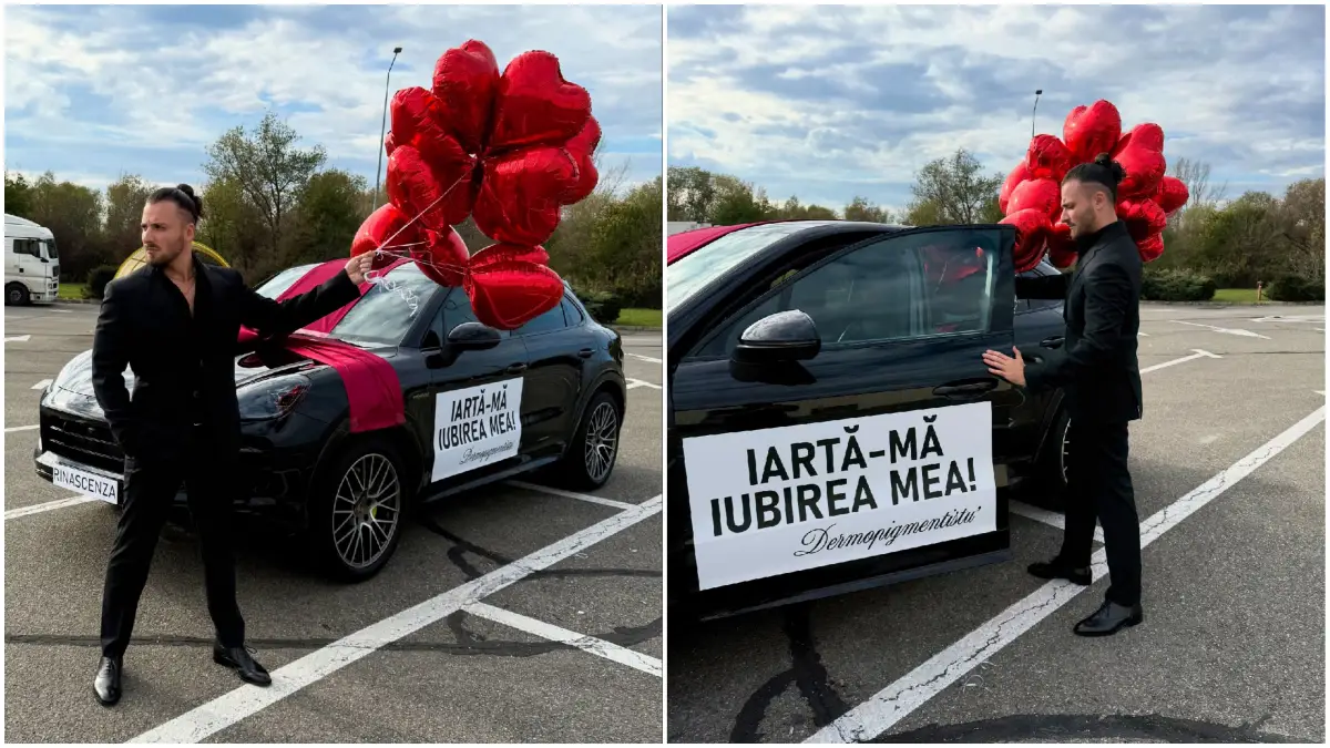 Un tânăr din Alba, ”vinovat” că a făcut senzație prin Cluj-Napoca cu o mașină plină de inimioare și cu mesajul IARTĂ-MĂ IUBIREA MEA. „Dermopigmentistu”: ,,O fi marketing sau cu ce-oi fi greșit să fac un așa cadou”