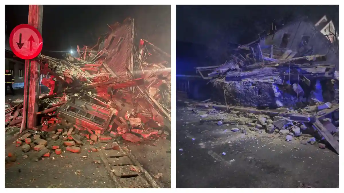 VIDEO | Zid prăbușit la o casă veche din Abrud, azi-noapte. Clădirea trebuia să ajungă la Muzeul Astra: ,,S-a cerut aviz de la Ministerul Culturii, dar a fost respins”